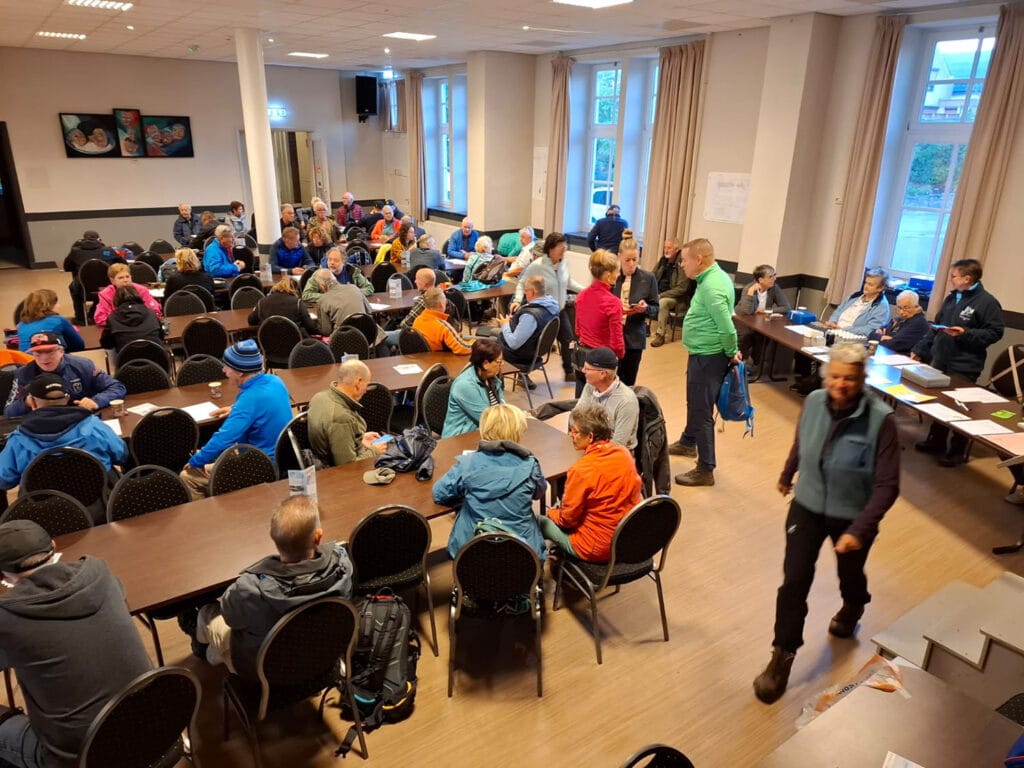 De ochtend begon koud, met rijp op de velden. Daarna kwam de zon de boel opwarmen. 566 enthousiaste wandelaars stonden te trappelen van ongeduld om de kilometers weg te wandelen. Een stralende wandeldag, lekkere vlaai of een kop warme soep als tussendoortje en een koud pilsje op het terras bij Bie Sjefke als ultieme beloning. We mochten veel mooie en enthousiaste reacties ontvangen op de routes en op de organisatie. Ook een dankjewel aan de vrijwilligers die al voor dag en dauw aanwezig waren om alles in goede banen (en bussen) te leiden.